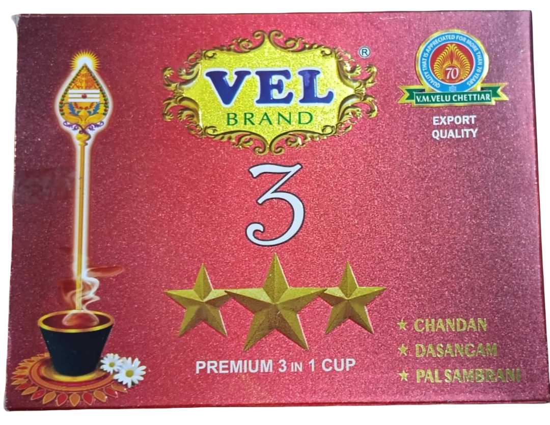 Sambrani is typically used by burning on a small charcoal piece or in a special holder, producing a rich, aromatic smoke. It is known for its deep, earthy scent and is often used during religious ceremonies or to purify the home.