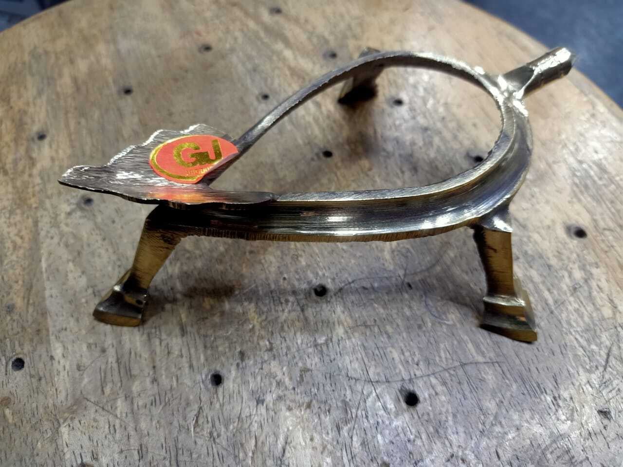 A Sangu stand is a specially designed holder used to display or hold a Sangu (conch shell) during Hindu rituals and ceremonies. The Sangu is considered a sacred object, often associated with Lord Vishnu, and is used in temples and homes for various religious purposes, including offering water, blowing during rituals to create auspicious sounds, and as a symbol of purity.