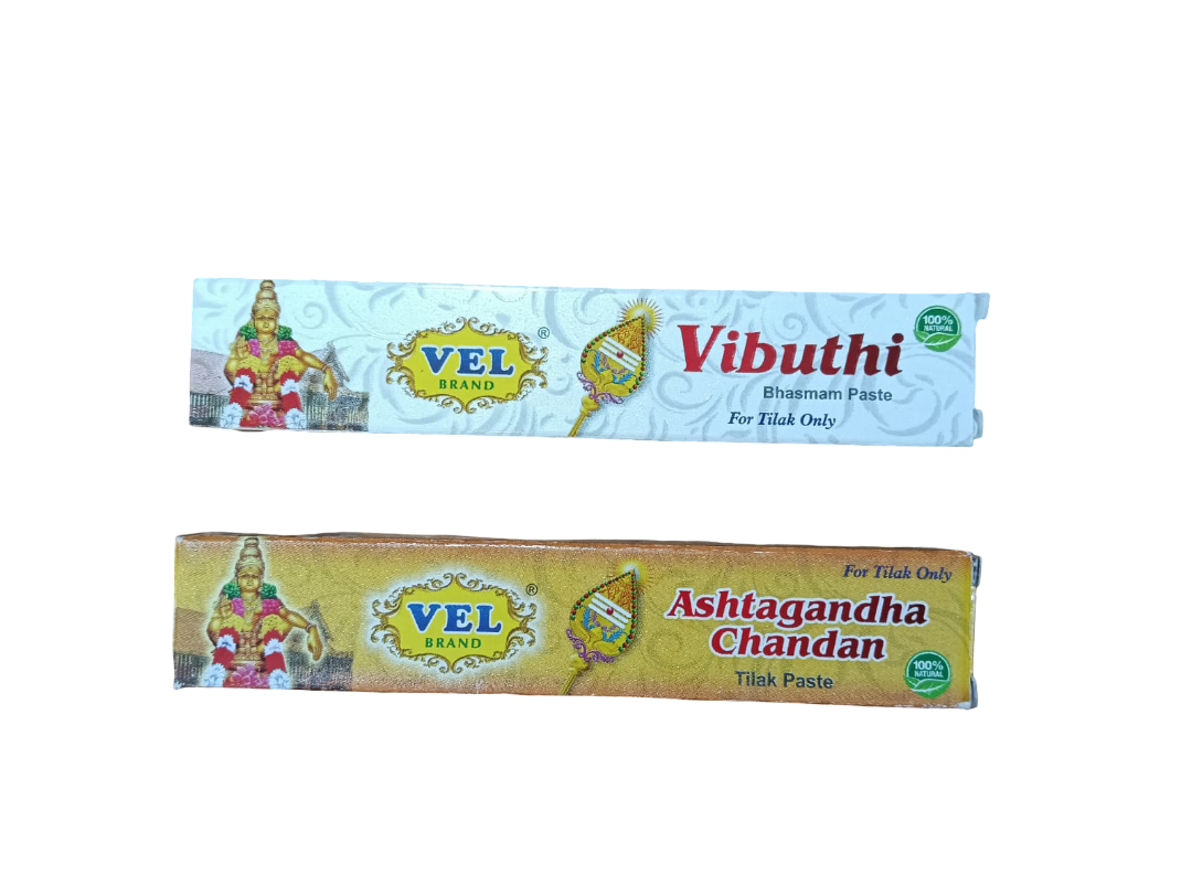 Tilak Paste - Vibuthi Paste - Chandan Paste Share WhatsApp Deel X Pin it Messenger Email Product form Types Free pickup in our shop(s) Ashtagandha Chandan Tilak Paste Bhasmam (Vibuthi) Paste Free pickup in our shop(s) Rs. 60.00 Quantity Add to cart This item is a recurring or deferred purchase. By continuing, I agree to the cancellation policy and authorize you to charge my payment method at the prices, frequency and dates listed on this page until my order is fulfilled or I cancel, if permitted.