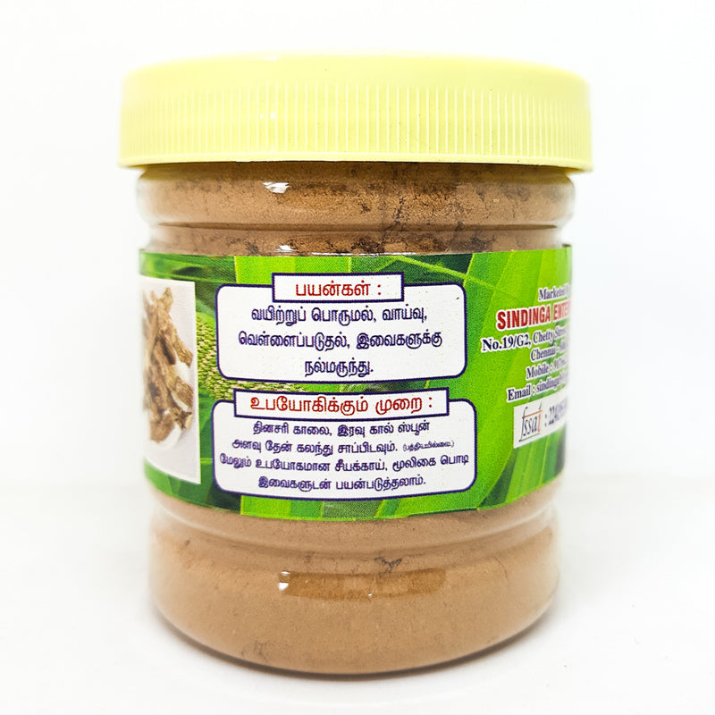 Vasambu powder, also known as Sweet Flag Podi, is made from the dried and ground rhizomes of the Acorus calamus plant. This powder is traditionally used in various wellness practices for its distinctive properties. It is often included in formulations or remedies for its potential benefits. To preserve its freshness and effectiveness, store Vasambu powder in an airtight container in a cool, dry place, away from moisture and direct sunlight.